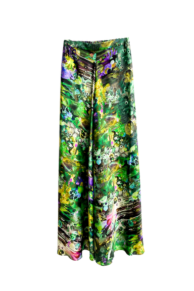 Paneled trouser with side slits. Details: Side slits Front button closure Made in Los Angeles Fabric & Care: 100% Cotton Machine wash cold g...